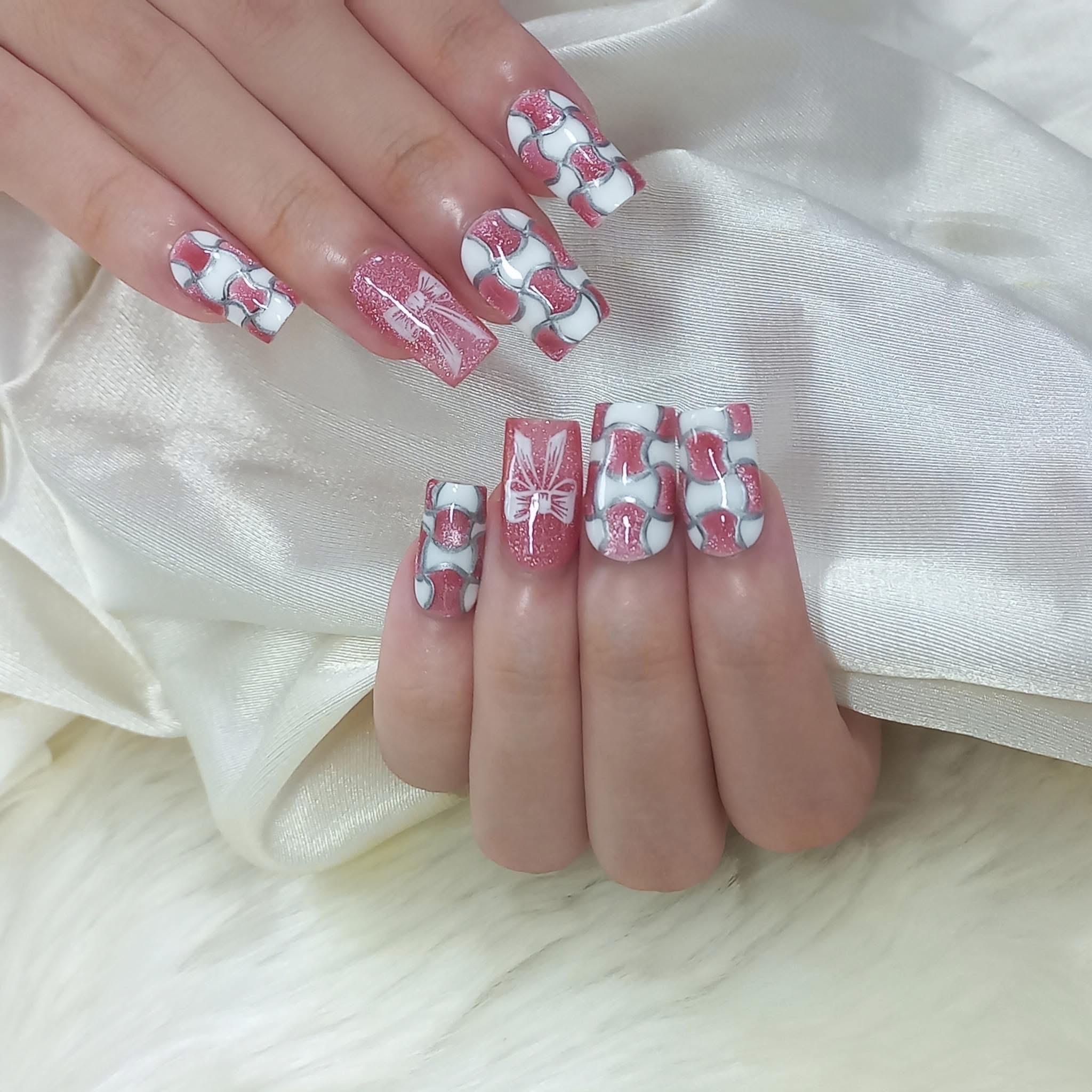 Magnetic gel nail design creating reflective lines resembling a cat’s eye. Trendy and eye-catching.