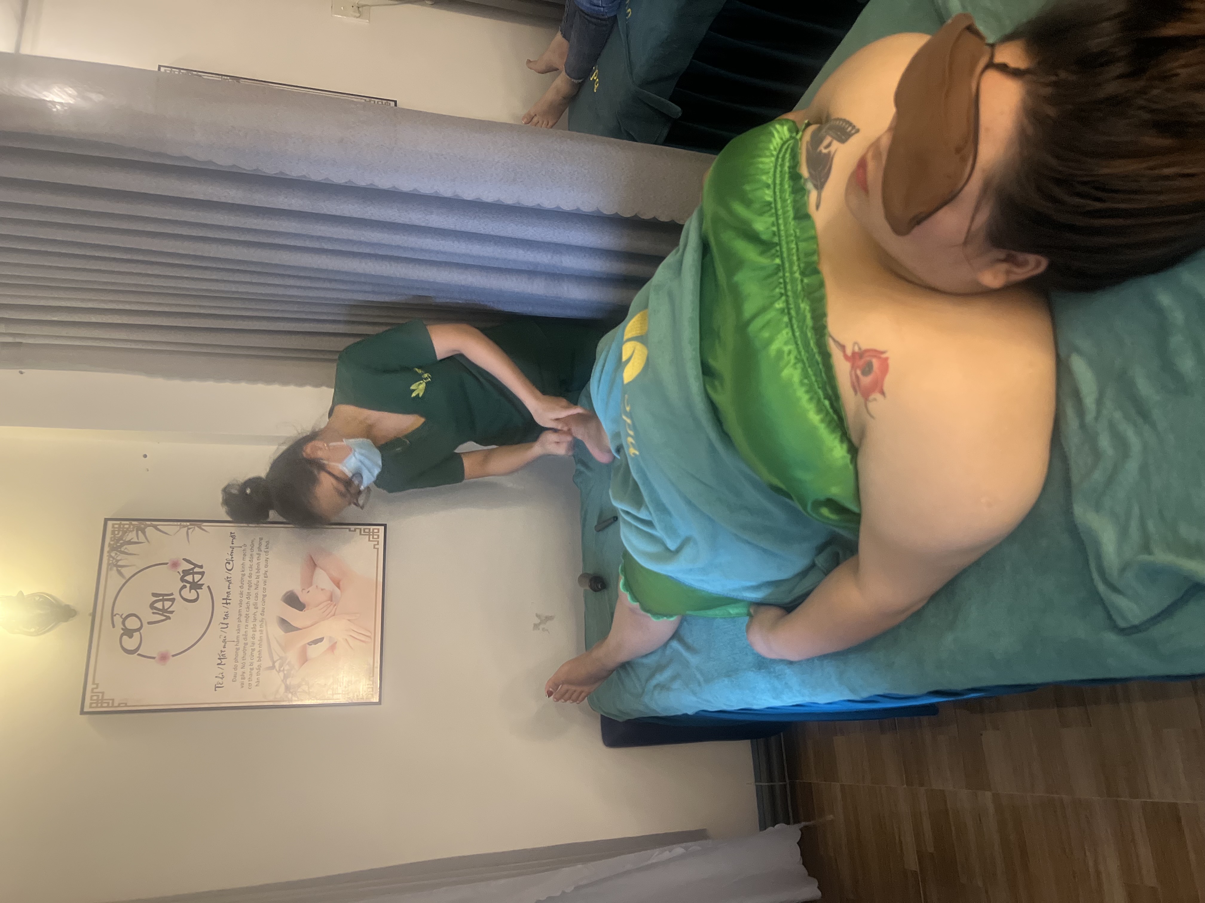 -Massge tay -Massge chân -Massge lưng -Massge đá nóng lưng (5 viên) -Ngâm chân thảo dược (giúp lưu thông khí huyết giảm đau mỏi )