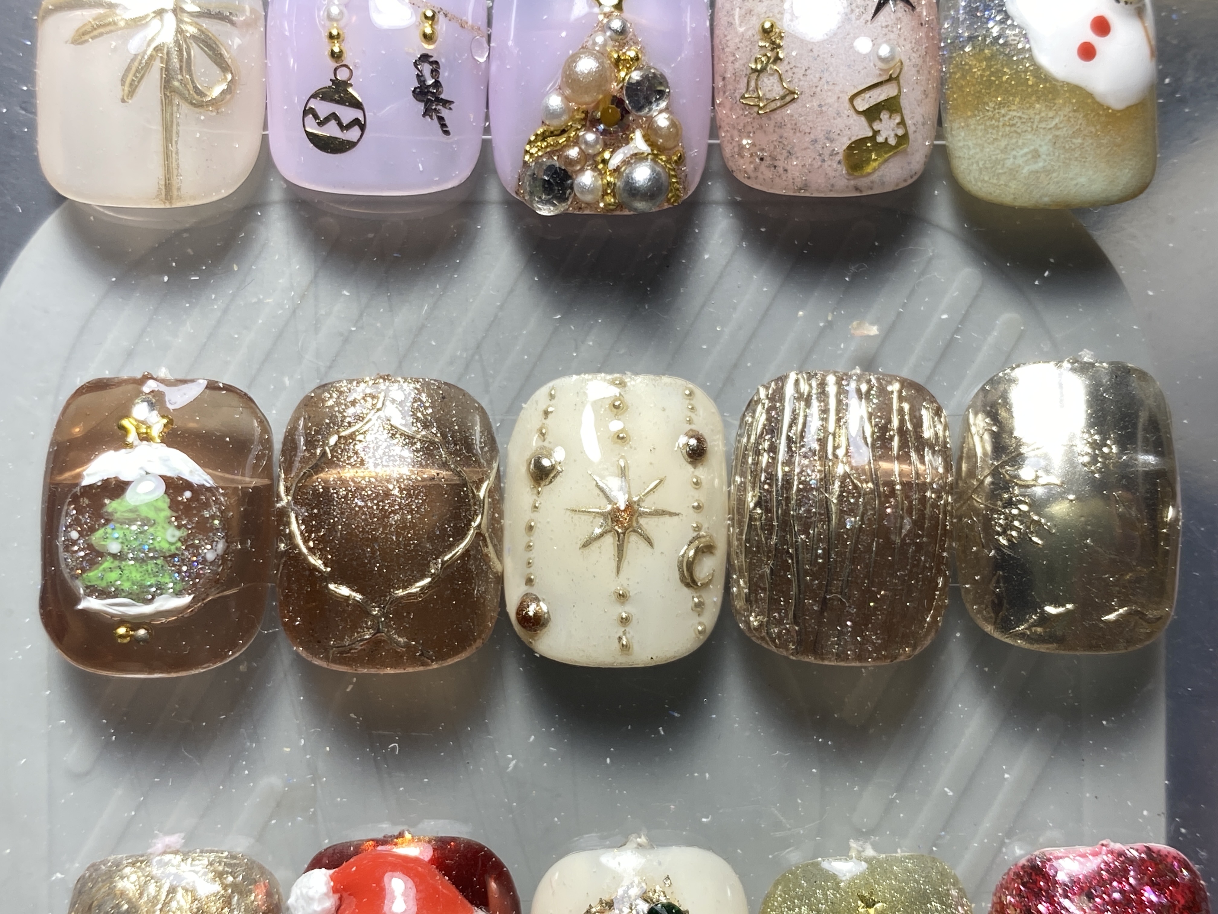 Giá bộ trang trí 5 ngón gồm Nổi cầu tuyết cây thông 45 k Hoa văn tráng gương, nổi châu sao tráng gương, vân sọc tráng gương 20 k /ngón Tráng gương full, vẽ nổi, tradng gương lần nữa 25 k Chưa bao gồm sơn và cắt da