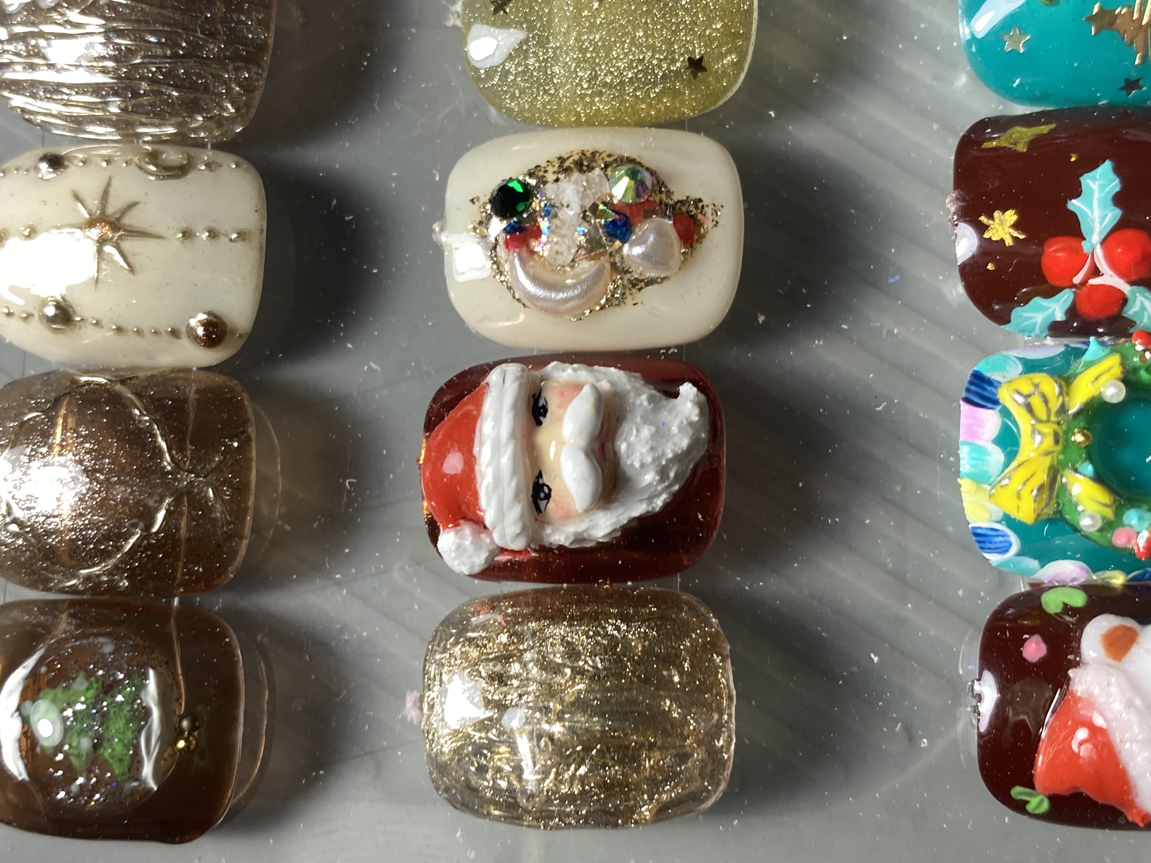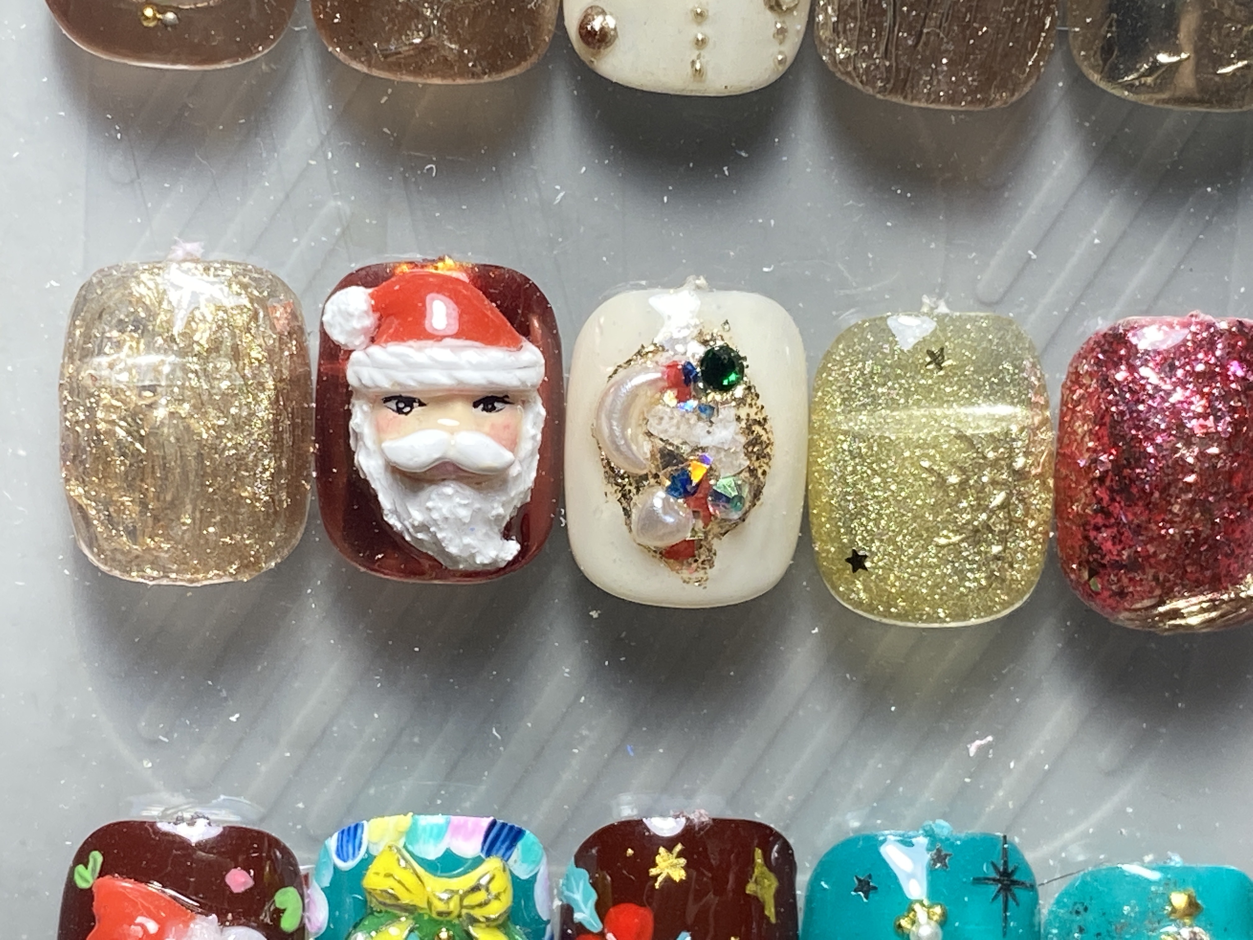 Giá trên bao gồm trang trí 5 ngón Vẽ tráng gương nổi vân 20 k Vẽ tuyết tráng gương 20 k Vẽ tráng gương viền đầu móng 15 k Ông già noel 3D 90k ngón Đính nhũ, xà cừ 35 k