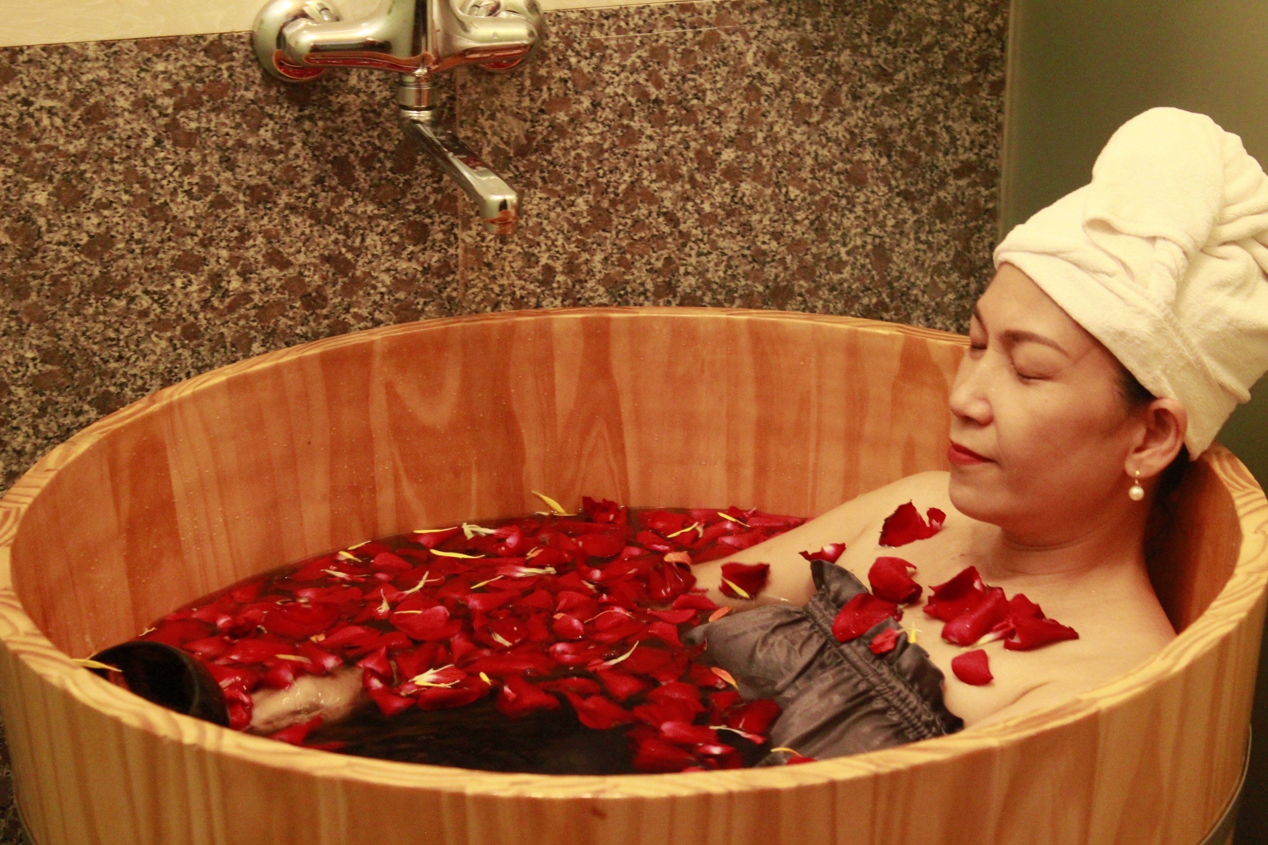 Tắm lá thuốc Dao đỏ mang lại sự thư thái, bình yên và giúp làn da thêm trắng mịn, loại bỏ độc tố